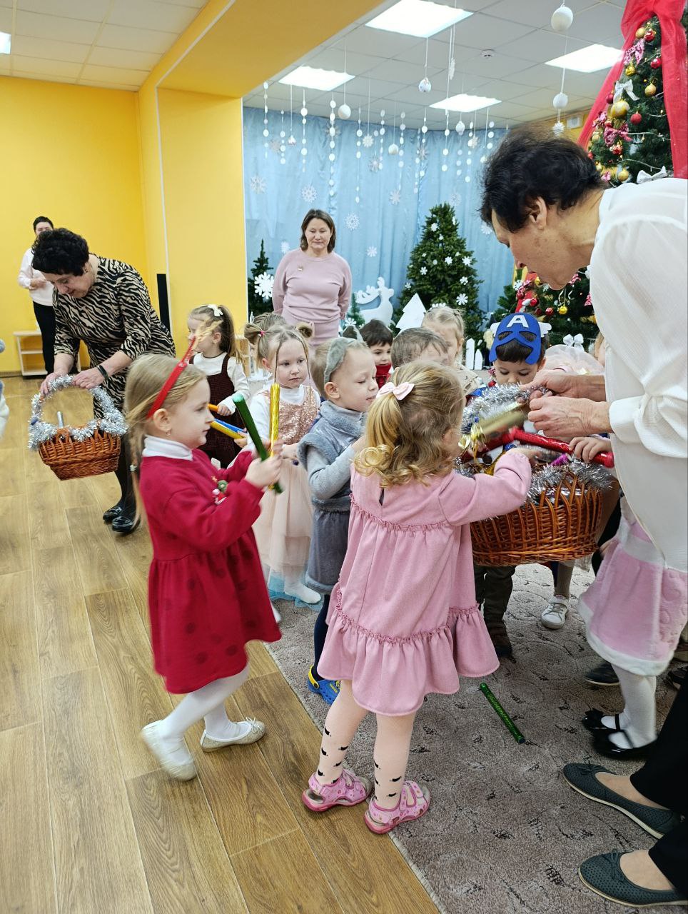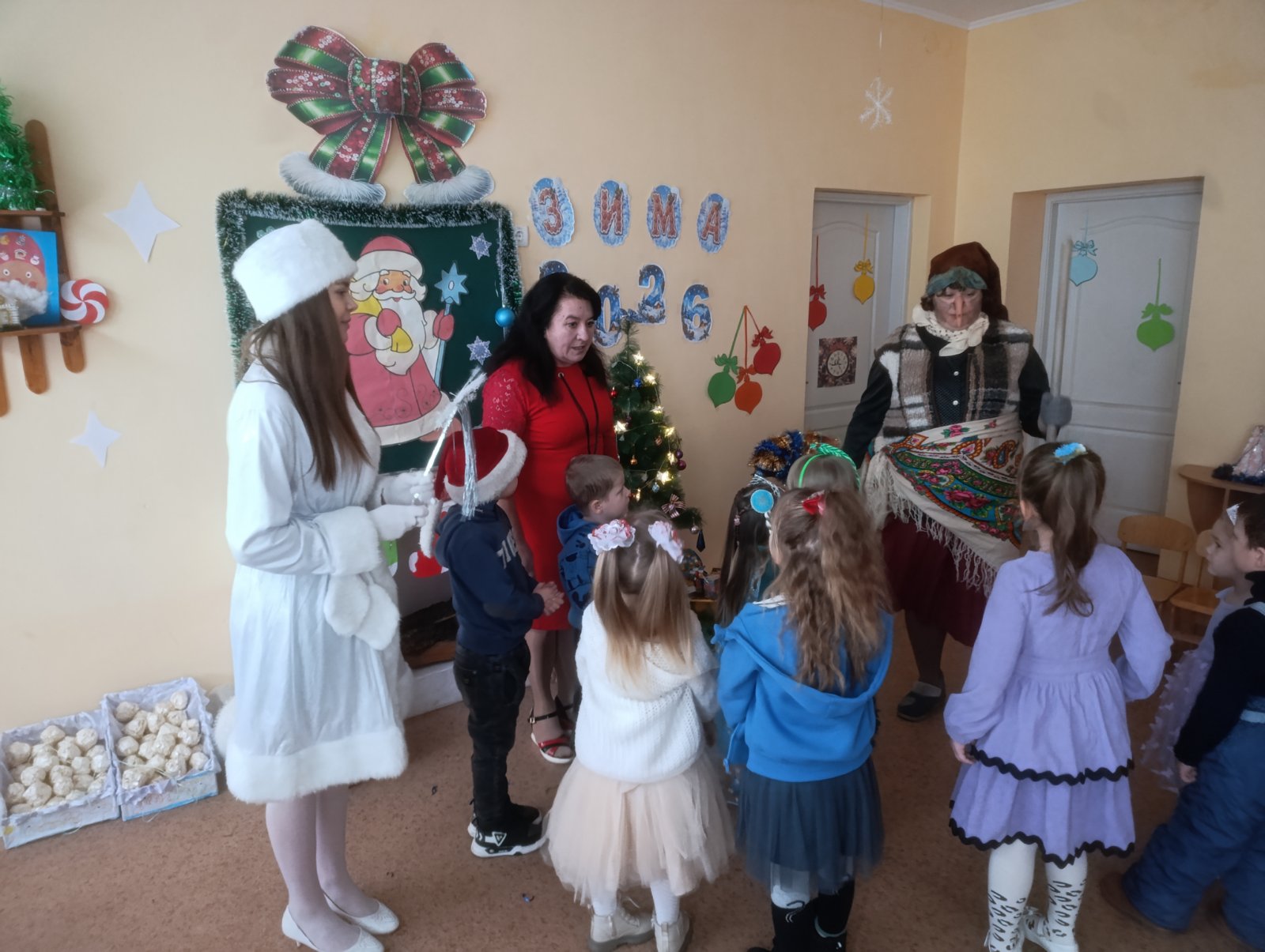 Дошкільнята також активно долучаються до святкувань: у дитячих садках проходять новорічні ранки, на яких малюки водять хороводи, грають у ігри, співають пісні та читають вірші. Новорічна ялинка дарує дітям чудові сюрпризи, а святкова атмосфера перетворює кожен ранок на справжню казку.