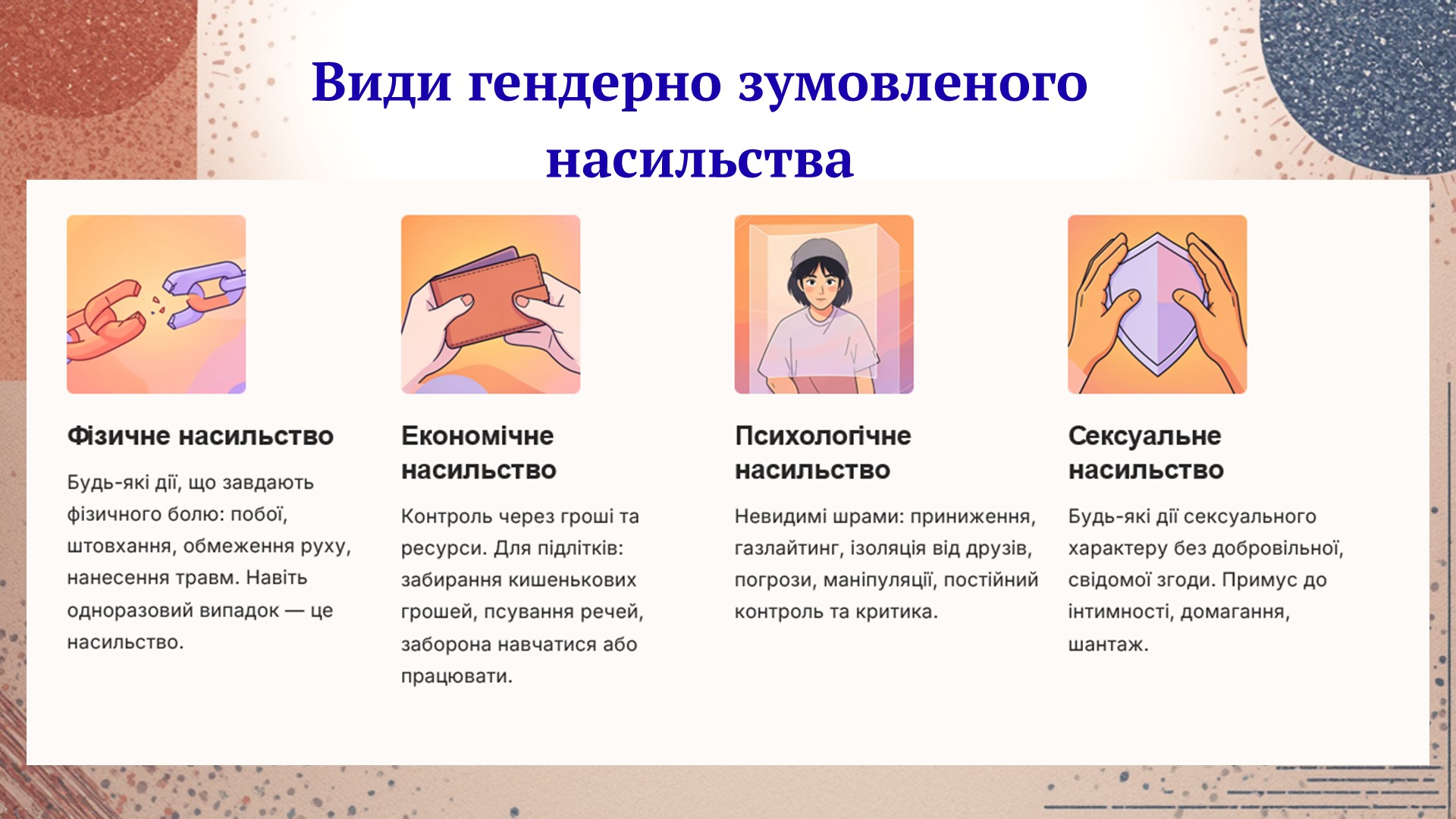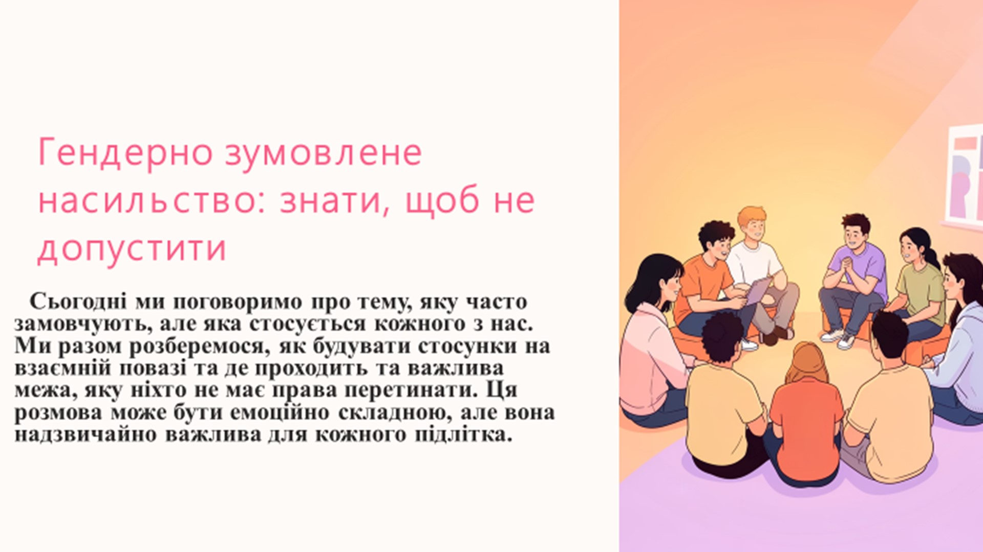 Під час тренінгу учні обговорили поняття гендерно зумовленого насильства, його прояви та способи протидії 🛡️. Особливу увагу було приділено формуванню навичок розпізнавання небезпечних ситуацій, алгоритмам звернення по допомогу та підтримці одне одного.