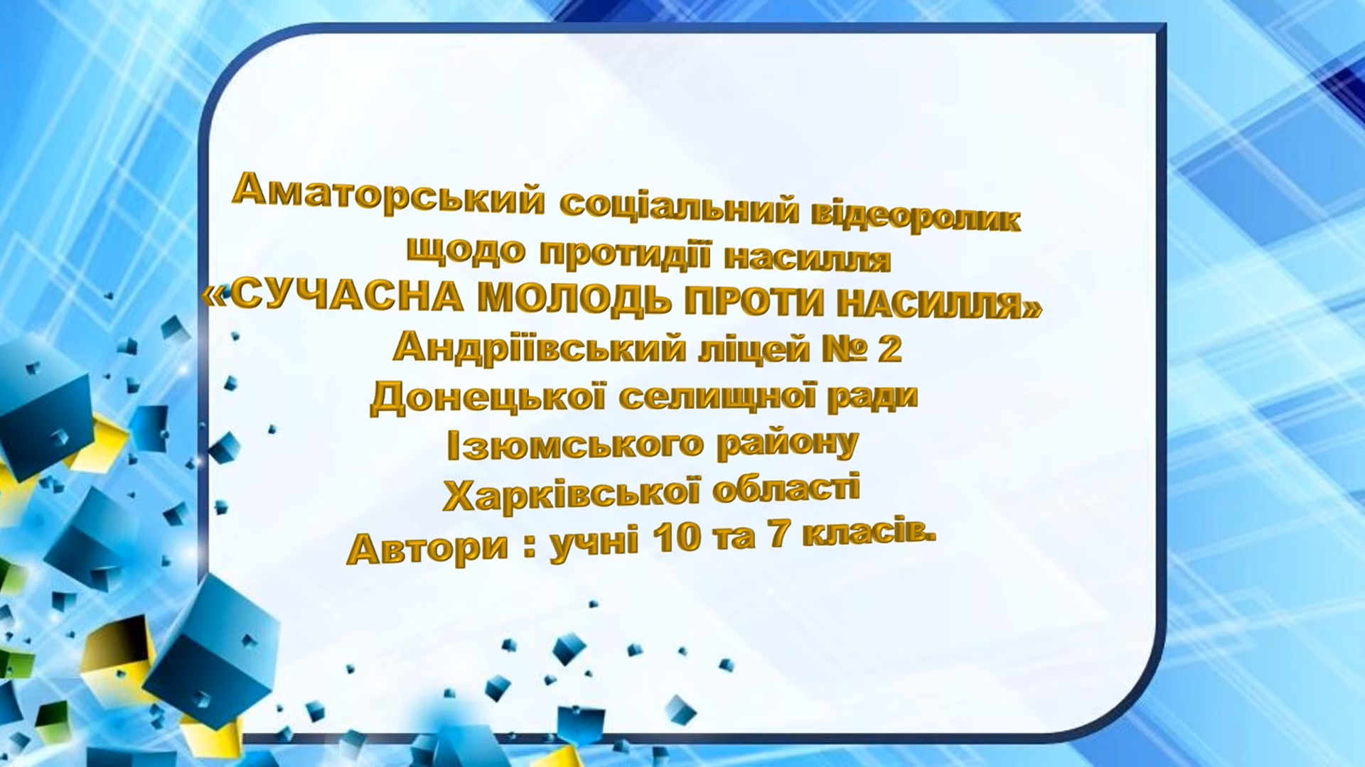 Наші талановиті учні долучилися до важливої ініціативи, спрямованої на формування культури поваги, безпеки та взаємопідтримки. Через творчість і відеомистецтво вони висловлюють свою позицію проти будь-яких проявів насильства та закликають до відповідального ставлення одне до одного.