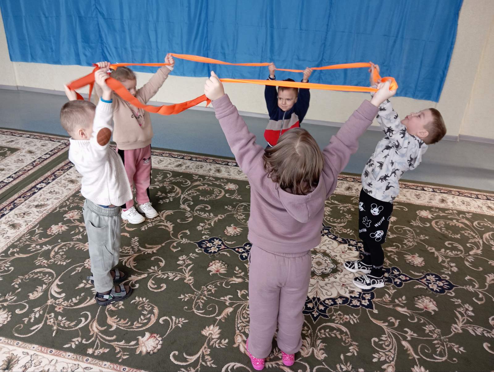 З вихованцями проводилися ігрові вправи, спрямовані на розвиток позитивного емоційного стану та взаємодії між дітьми. Під час вправи з кольоровими стрічками «Коло єдності» діти вчилися:
